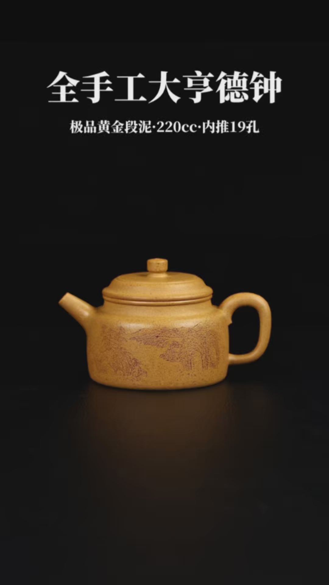 全手工制德鐘壺,極品黃金段泥,220cc,內推19孔。