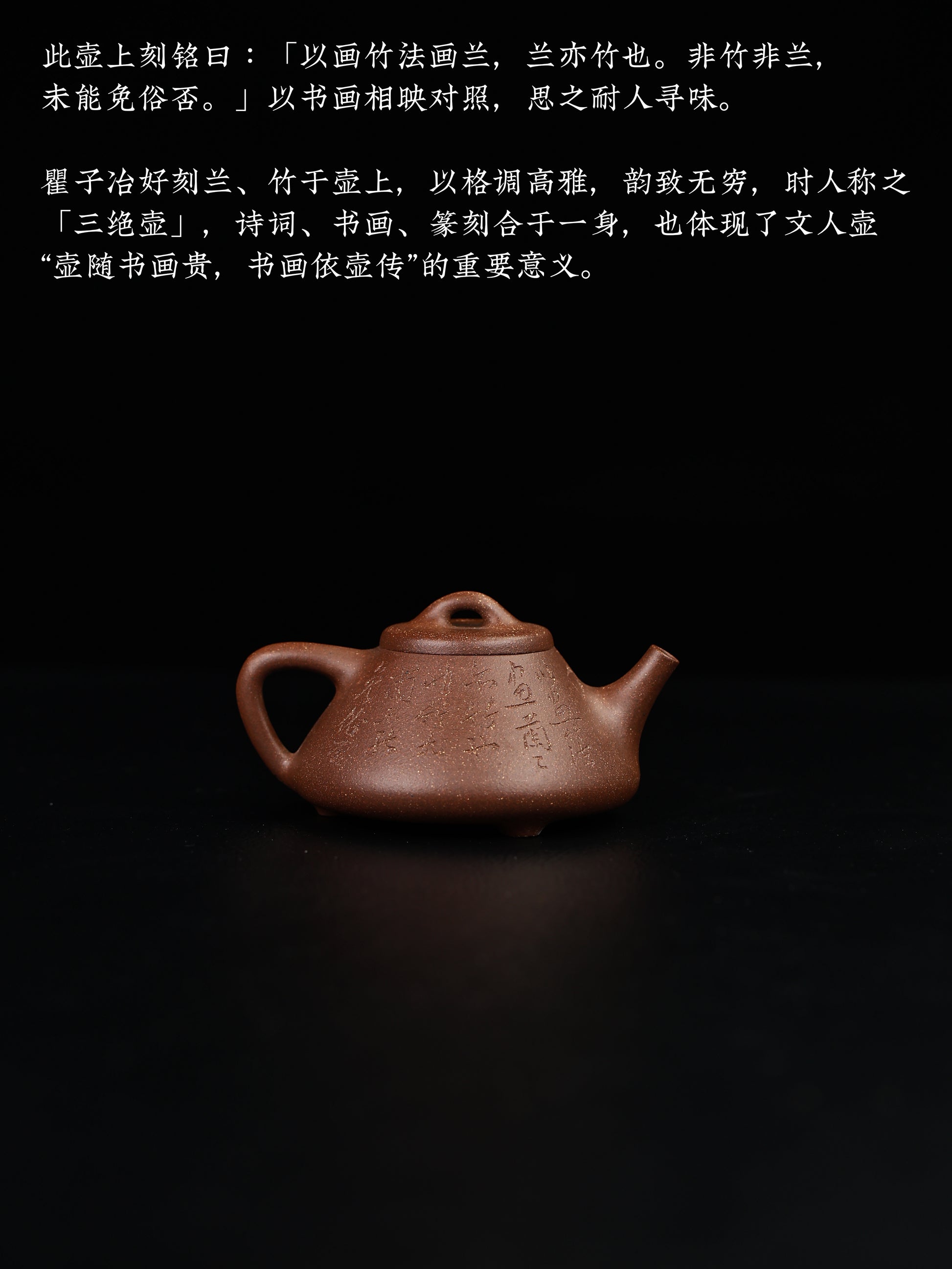 1:1臨摹清代瞿子冶“三絕”之-蘭竹圖子冶石瓢,由澄堂紫器品牌創始人強益鋮製作,黃龍山紫泥制,150cc,14孔出水。