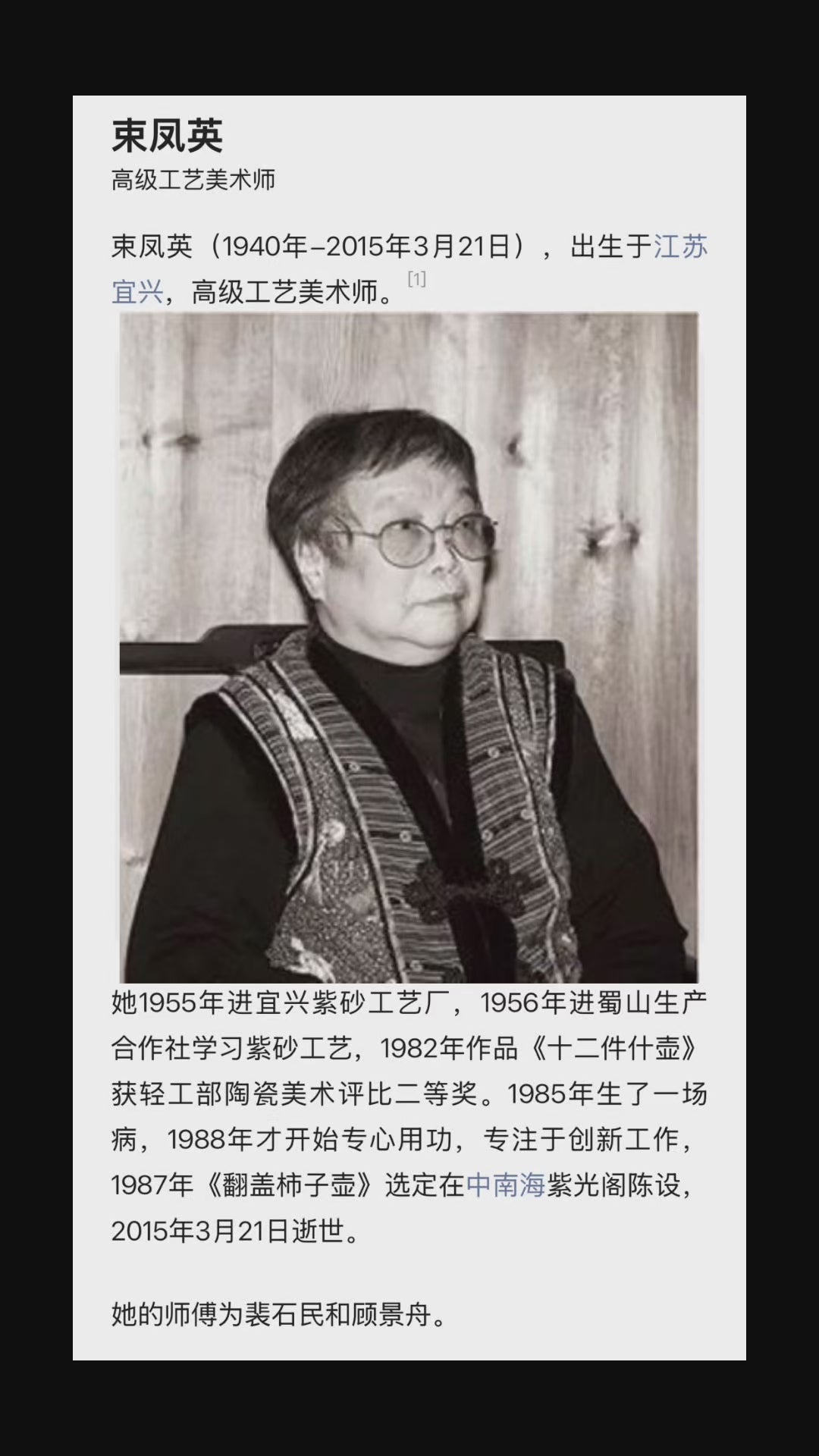 紫砂一廠早期名家壺,由當代大師束鳳英製作,獨孔。
